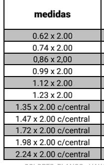- Distintos colores y medidas